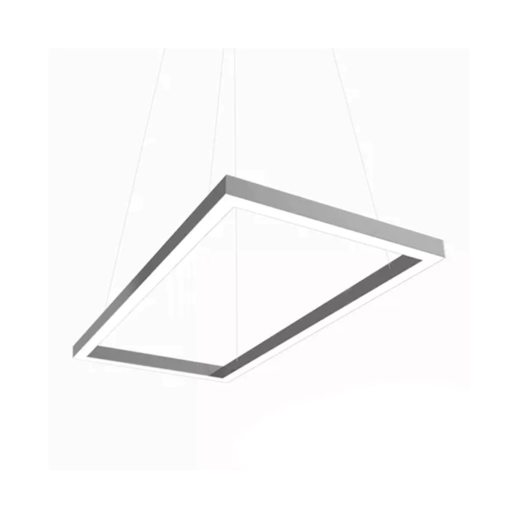 Un delgada perfilería de aluminio anodizado nos ilumina desde su interior, como flotando en el aire gracias a sus casi imperceptibles tensores dando una imagen moderna y llamativa.