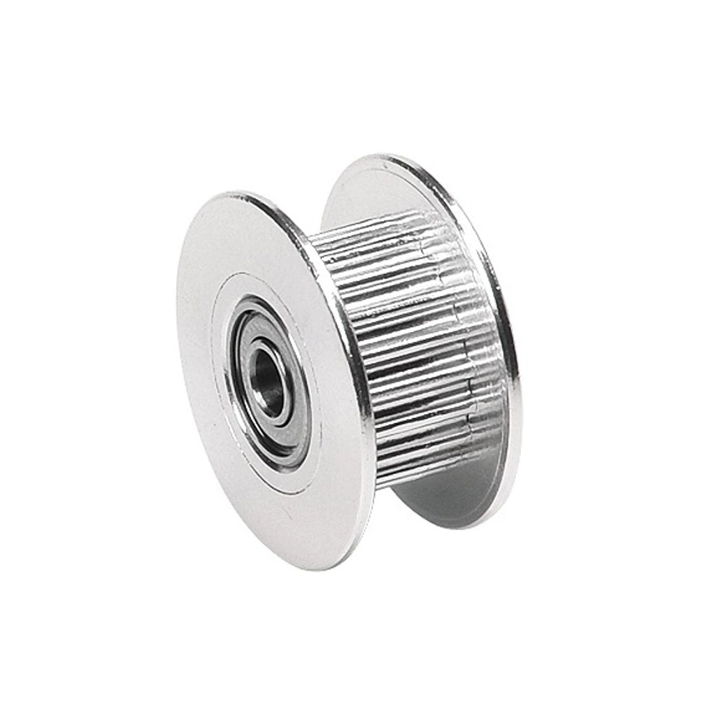 Polea GT2 tensora de 16 dientes con eje de 3mm para correa de 6mm. Especificaciones: - Ancho de correa: 6mm - Cantidad de dientes: 16 - Diámetro externo: 13mm - Altura: 8,5mm - Diámetro de eje: 3mm