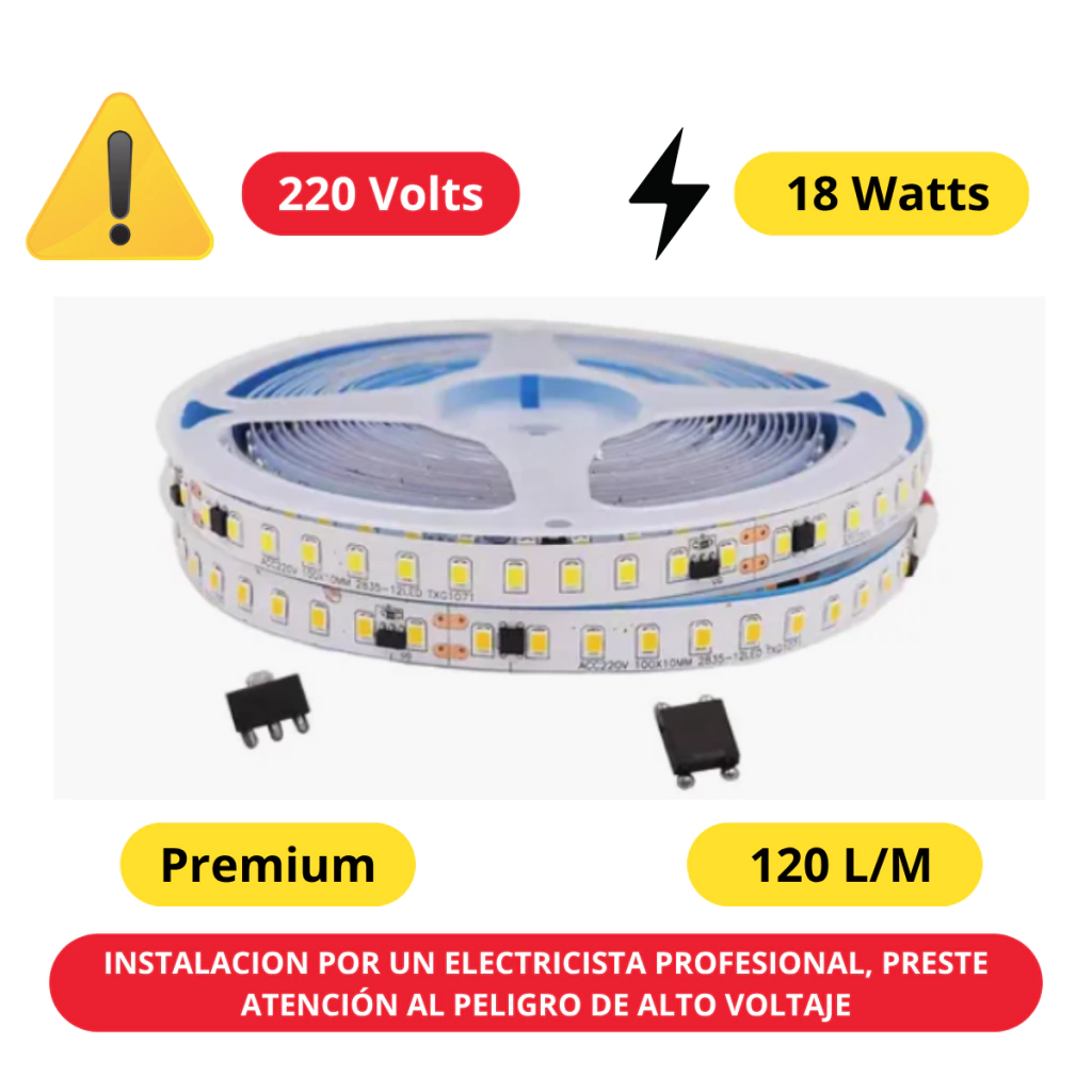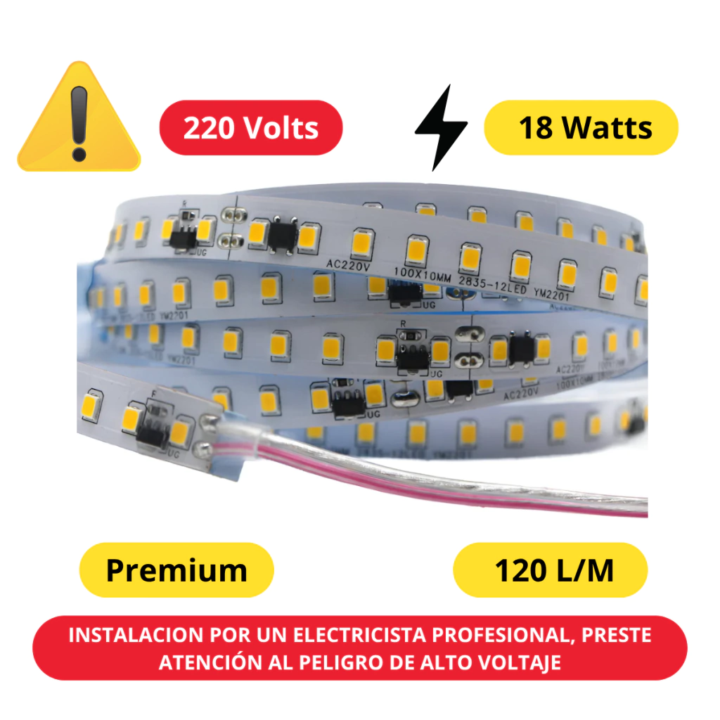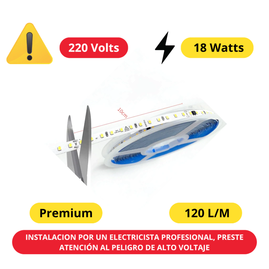 Las tiras led 2835 120 Leds por metro 220V son fraccionable cada 10 cm y viene con pegamento 3M en el dorso para una fácil instalación.
